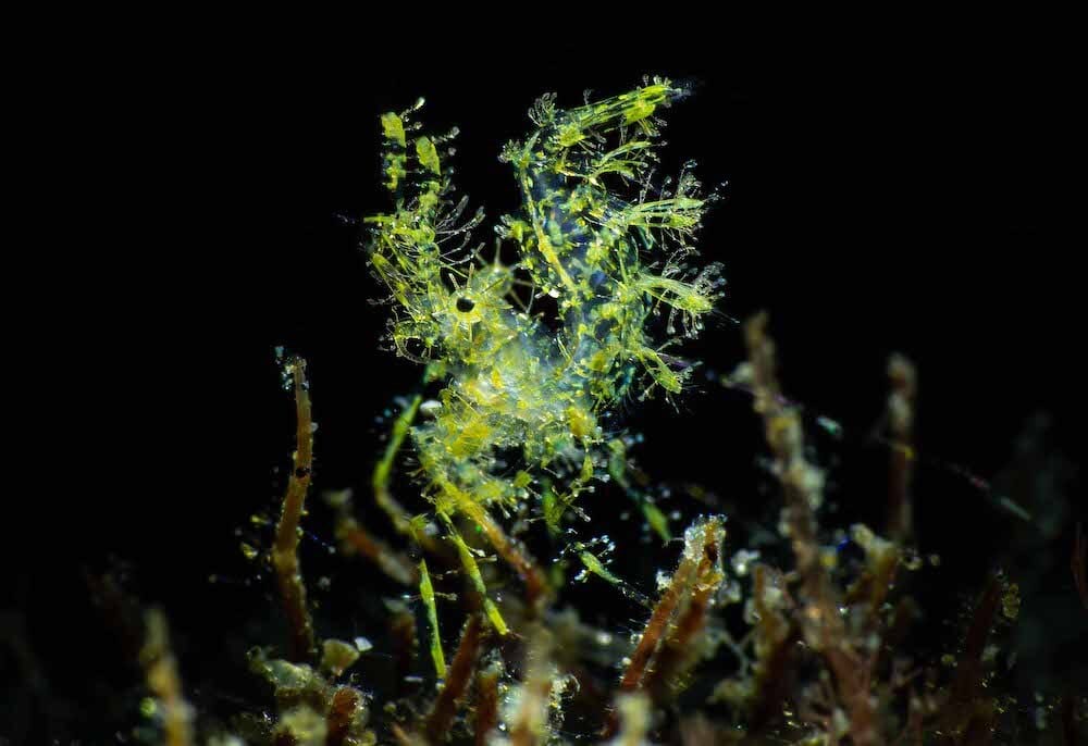 Victor Corces is an underwater photography enthusiast. His favorite places to dive are Indonesia and the Philippines. The dark background is achieved by closing the aperture of the camera to ensure only selected objects are illuminated by the flash. He also uses an “optical snoot”, which he likens to an intense and narrow-beamed flashlight.